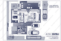 2 поверхи 6 будинків 110.2 м² 66.4 м² 3 спальні 1 ванна та 1 санвузол гараж на 1 авто  Кількість поверхів: Кількість будинків: Загальна площа одного будинку: Житлова площа одного будинку: Кількість спалень: Кількість санвузлів: Гараж: